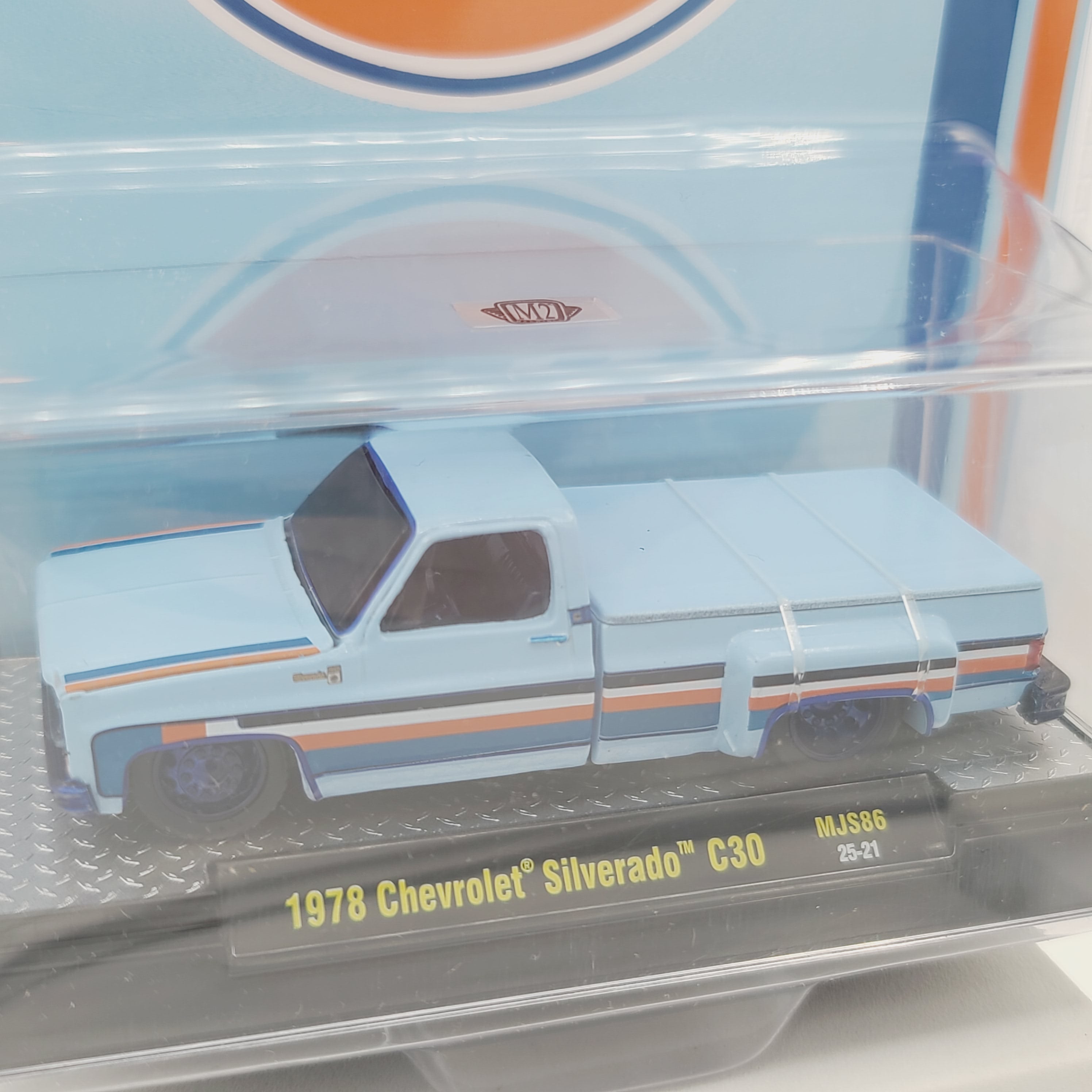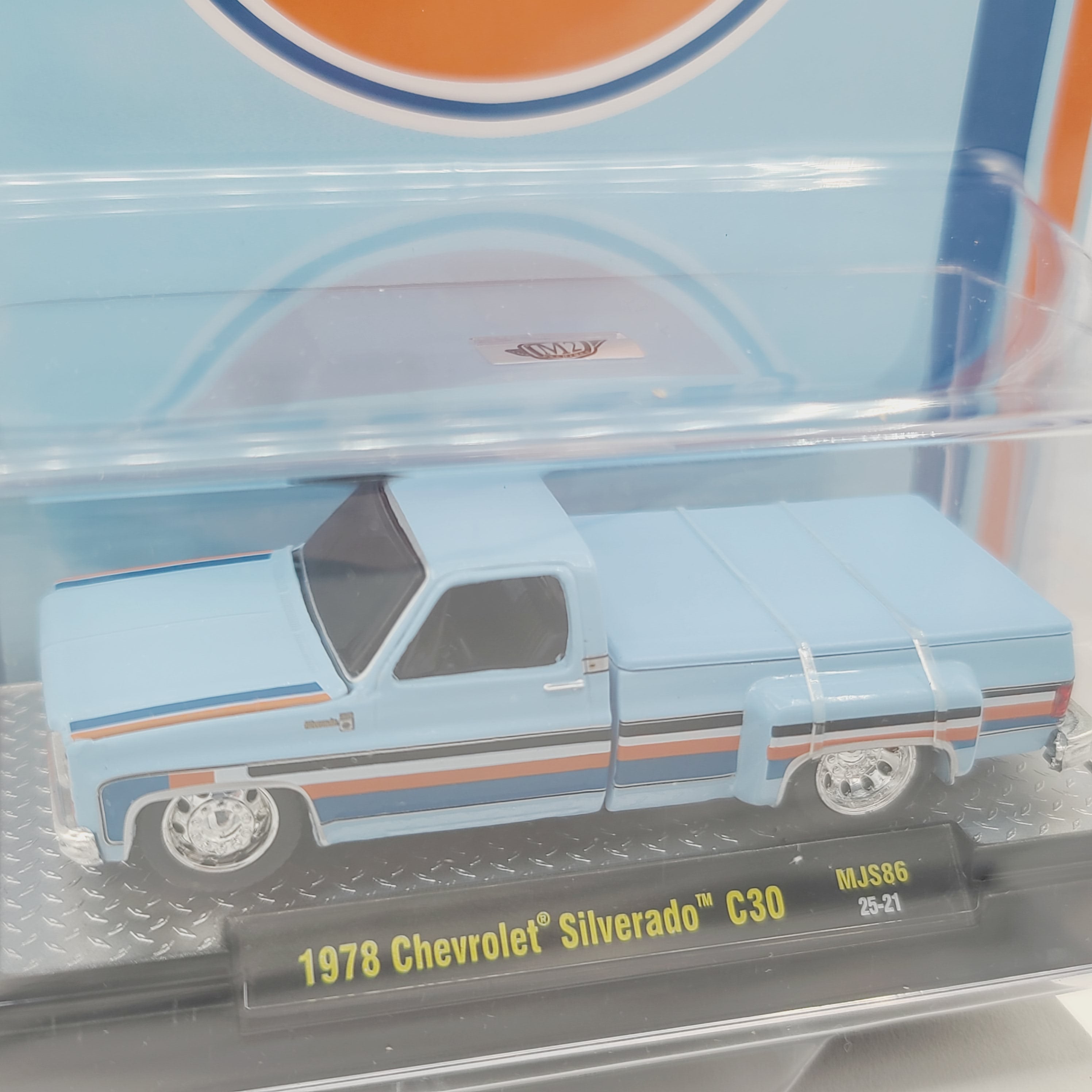 M2 Machines '78 Chevrolet Silverado C30 Pickup - 1:64, Gulf Oil (2025 MiJo Exclusives - Limited Edition)